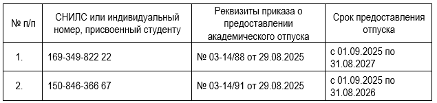 СТУДЕНТЫ, НАХОДЯЩИЕСЯ В АКАДЕМИЧЕСКОМ ОТПУСКЕ